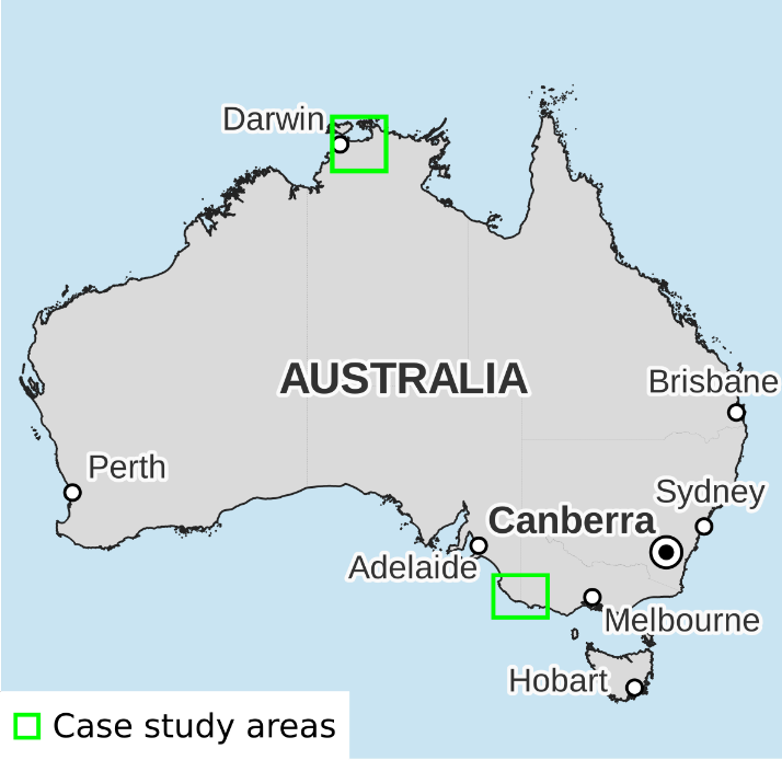 La construcción del Atlas GDE concluyó que el 34% del paisaje de Australia contiene potencialmente GDE, de los cuales el 5% se clasifica con un alto potencial de GDE (Doody et al., 2017). El uso de SAR para la detección de GDE se probó en dos sitios de estudio contrastantes en Australia, uno en Victoria y Australia del Sur y otro en el Territorio del Norte (Fig. 2). El sitio 1 (área del Monte Gambier) corresponde a un sistema acuífero kárstico y el sitio 2 (área de Wildman-Kakadu) corresponde a una llanura de inundación costera monzónica a pastizales semiáridos interiores (Castellazzi et al., 2019)